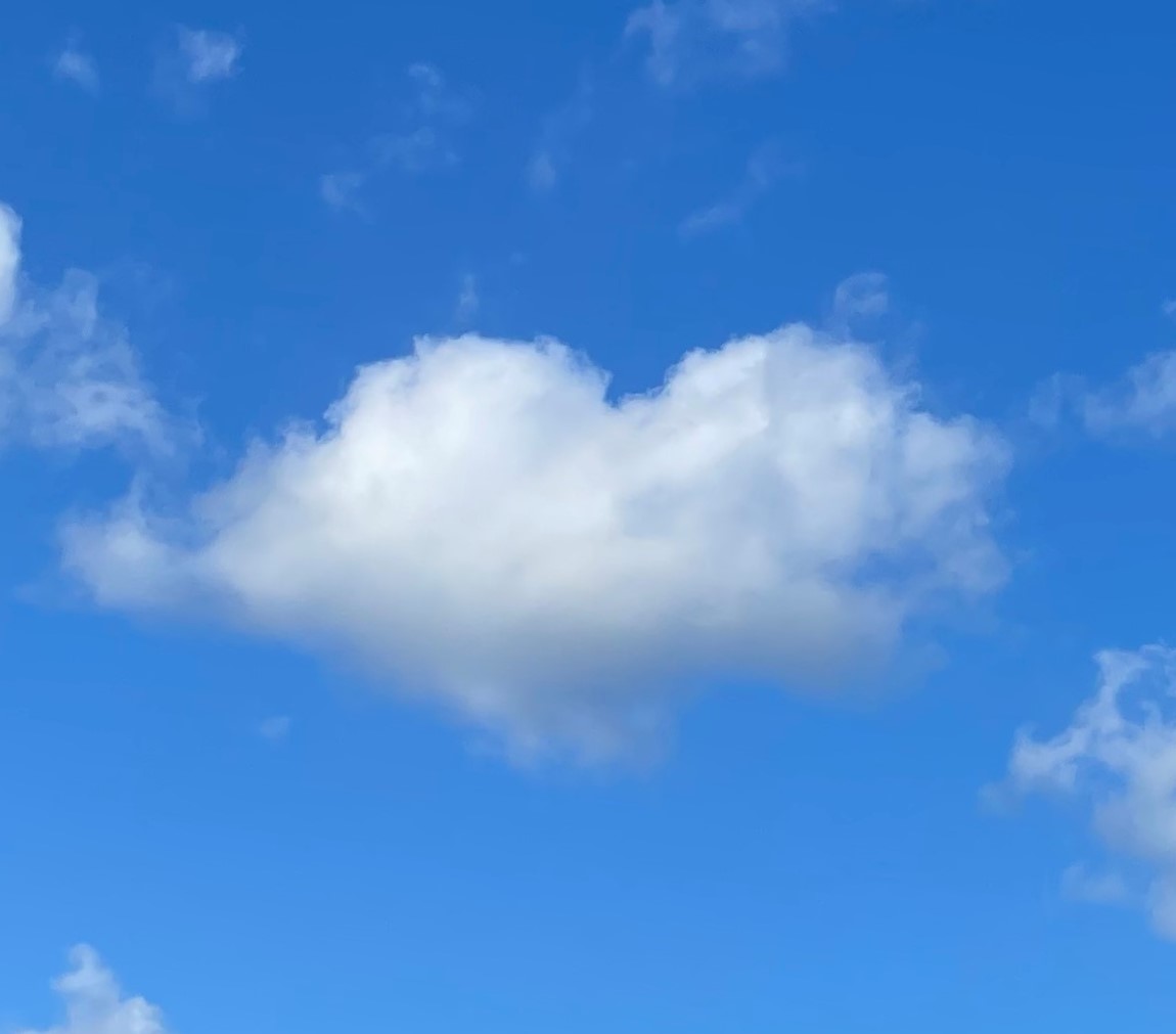 Vroeger keek ik vooral omhoog om te kijken of het ging regenen. Nu kijk ik bewust naar de wolken. Jaren geleden zag ik een wolk in de vorm van een hart. Ik ging naar de hemel turen om er meer te zien. Zo ontdekte ik een manier om mijn hoofd even leeg te maken.